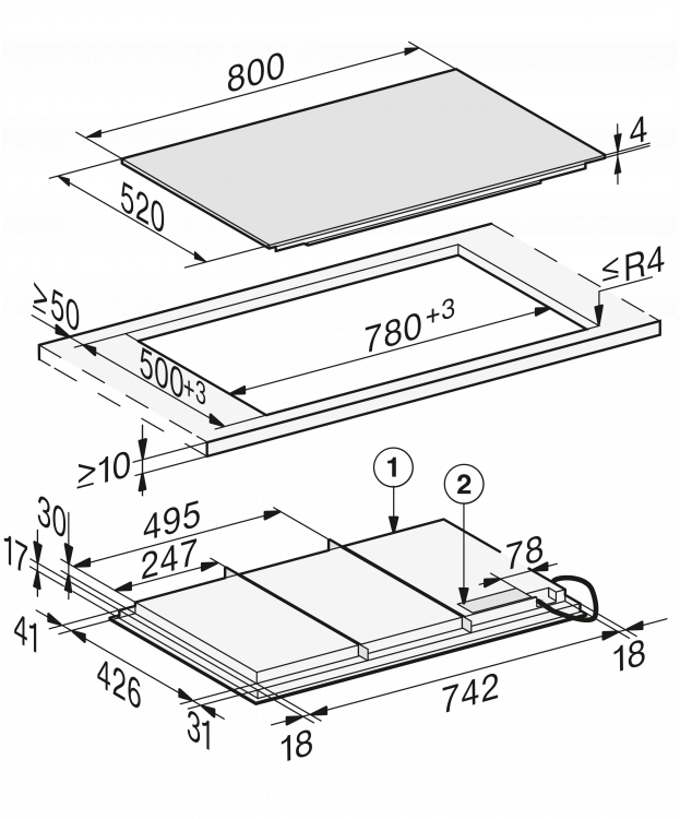 | Rozměry výřezu v mm (šířka) při instalaci bez rámu | 780 |