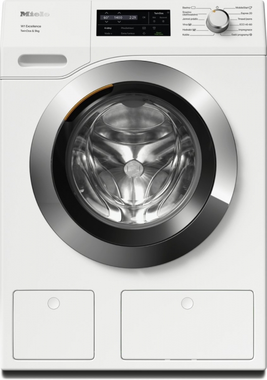 Pračka s předním plněním W1: s funkcí TwinDos, PowerWash a Miele@home pro chytrou péči o prádlo.